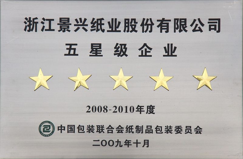 | 2008. | 09. | 景興紙業被全國工商聯紙業商會評為“中華蔡倫獎”杰出企業獎;同年12月,在紀念改革開放30年民營企業系列成就頒獎典禮上,景興紙業榮獲“最具成長性民營企業”榮譽稱號。 |